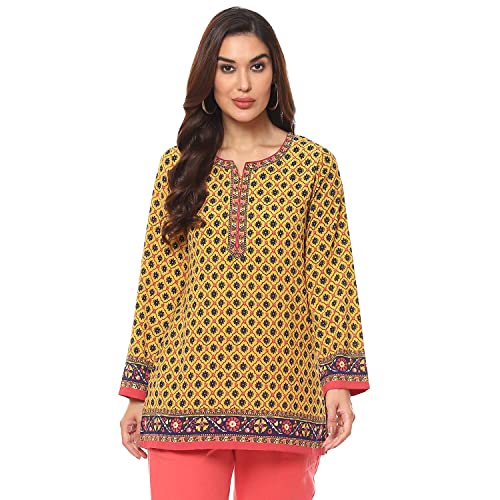 BIBA Women Printed Mix and Match(Crepe KU18836_Mustard_42)