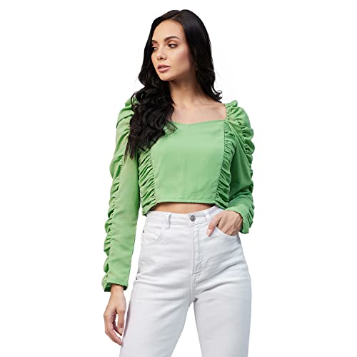 Carlton London Women's Regular Fit Blouse (CL711B_Green M)