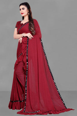 CLOMITA Solid Bollywood Lycra Blend Saree(Maroon)