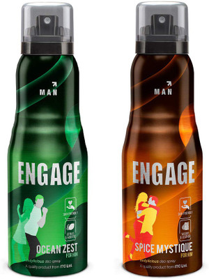 Engage Ocean Zest, Citrus & Aquatic and Spice Mystique, Woody & Leather, Skin Friendly Deodorant Spray - For Men(150 ml, Pack of 2)