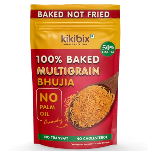Kikibix Baked Multigrain Bhujia Healthy Snacks for diabetics, 50% Less Fat, 30% Less Calories, 50% More Protein - No Sugar, No Palm Oil, 100% Baked Not Fried - 100gm