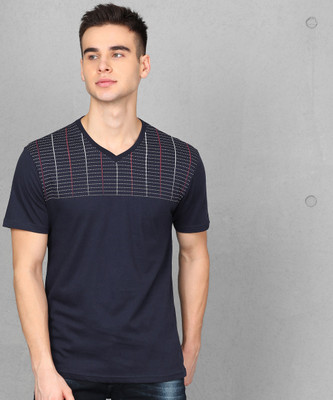 METRONAUT Printed Men V Neck Dark Blue T-Shirt