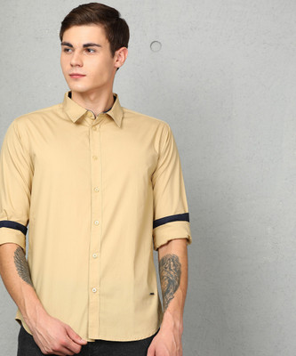 METRONAUT Men Solid Casual Beige Shirt