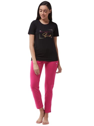 Modeve ® Women Printed Black and Pink Night Suit_XL