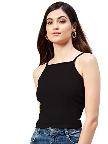 Rare Women Casual Black Colour Shoulder Straps Solid Styled Back Top