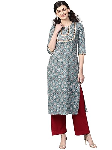 rytras Women's Cotton Printed Straight Kurta with Palazzos Pant(RYT546,Blue,XXL)