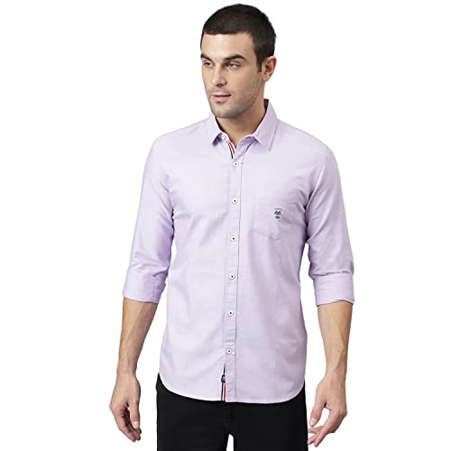 Thomas Scott Men's Solid Regular Fit 100% Cotton Casual Shirt with Spread Collar and Full Sleeve Purple