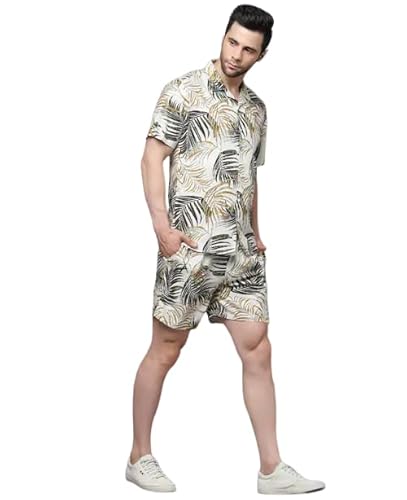 Flosive Co-ord Set for Men (2XL, White Leaf)