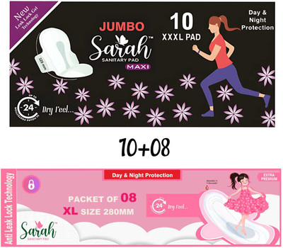@ Rs.549 View DetailsSarah Sanitary Pads XXL JUMBO 320mm Advance Cotton Gel Technology With Soft Wings, Sanitary Pad(Pack of 40)