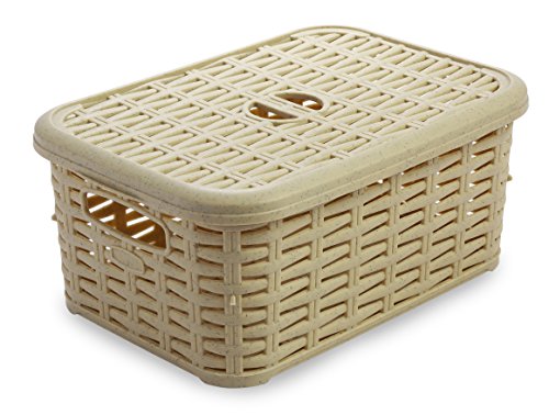 All Time Plastics Rattan Plastic Shelf Basket, 6 Liters, Beige