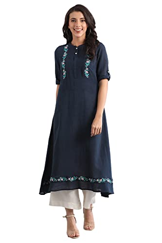Aurelia Women's Cotton Blend Solid Regular Kurta (22FEA11418-601284_Navy_L)