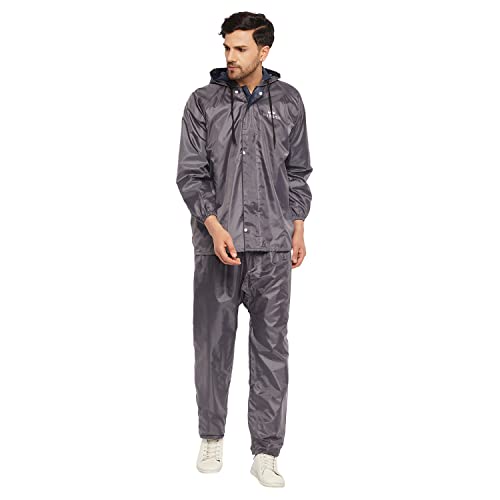 THE CLOWNFISH Rain Coat for Men Waterproof Raincoat with Pants Polyester Reversible Double Layer Rain Coat For Men Bike Rain Suit Rain Jacket Suit Inner Mobile Pocket with Storage Bag (Black XXL)