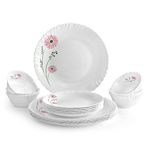 Cello Pink Lilac Opalware Dinner Set, 18-Pieces, White @ ₹1,099