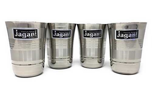 Jagani Stainless Steel Serving Glasses Mirror Finish Designer Glass Multi Purpose Unbreakable Water Drinking Glass - Set of 4 pcs
