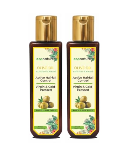 Econature Virgin Cold-Pressed Olive Oil for Active Hairfall Control, 100% Pure Natural, For All Hair Types, 200ml+20ml Extra, Pack of 2