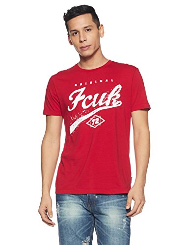 French Connection Men's Solid Slim Fit T-Shirt (561UF-JESTER RED_XL)