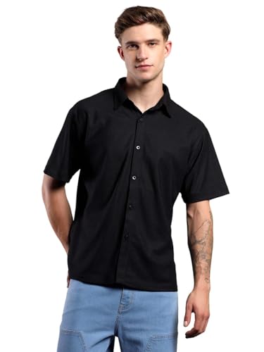KOTTY Men's Solid Regular Button Vantablack Casual Shirt(Black,L)-KTTMENSSHIRT250L