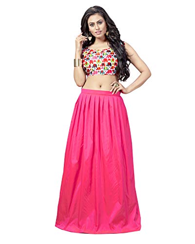 Fabrica Fab Women's Pink Taffeta Silk Digital Print Lehenga Choli (Semi Stitched_Free Size)