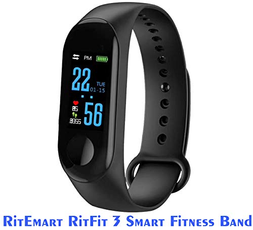 - RitEmart RitFit 3 Smart Fitness Tracker: Easily Check your daily activity levels on mobile App, Daily use feature like: Heart Rate, BP Monitoring, Blood Oxygen SO2 Level, Find Phone, Call Alert through text Massage Calling Person Name Display, Massage, WhatsApp, Facebook etc. alert Pedometer/Steps Counter, Calories Burned, Sleep Status, Active Minutes, Sedentary/Drinking Water Reminder, Smart Alarm etc.