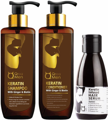 Qraa Men Keratin Hair Care Therapy for Dull, Damaged and Dry hair - With Keratin Shampoo, Conditioner and Serum | Pack of 3(3 Items in the set)