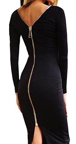 Abetteric Women Long Sleeve Bodycon Zipper Back Pencil Dress Black XL