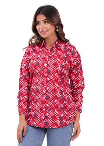 Rimika Red Zigzag Pure Cotton Casual Full Sleeves Shirt for Women