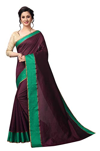 PerfectBlue cotton with Blouse Piece Saree (BinduVariation_ Wine_ Free)