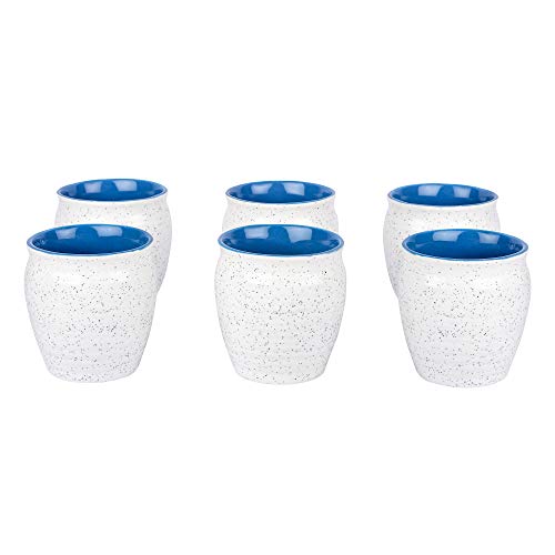 Anwaliya® Handcrafted Marble Printed Outside Blue Inside Ceramic Kulhad Mugs -Set of 6 for Tea, Coffee, Soup or Hot Cocoa