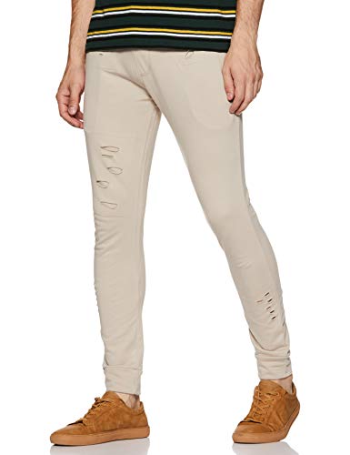 Sf Jeans By Pantaloons Men's Relaxed Fit Joggers (110040193_Stone_32W x 28L)