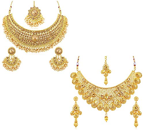 - This Sukkhi glamorous gold plated choker necklace set combo for women is made of alloy