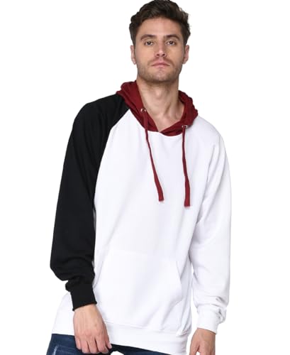 SXV Solid COLOURBLOCKED Sweatshirt Hoodie for Men & Women (White,Black.Maroon) (S)
