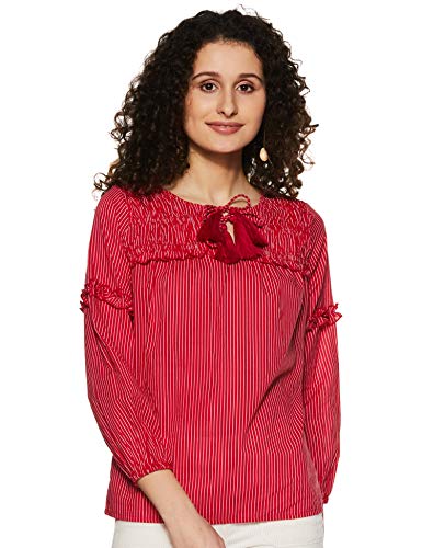 Amazon Brand - Symbol Women's Striped Loose Fit Top (SS18SYMWBL096-Red-S)