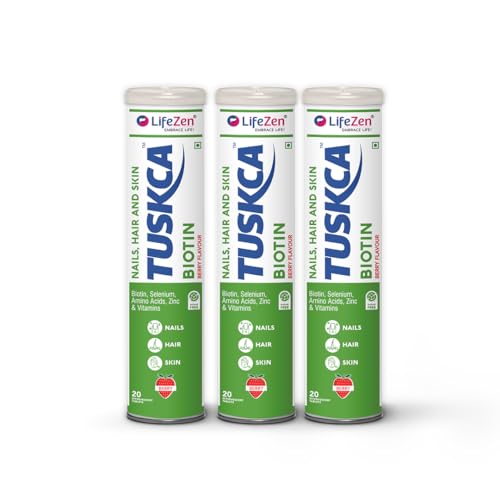 Tuskca Biotin + Selenium + Zinc for Hair, Nails & Skin Health | 20 Effervescent Tablet (Pack of 3) Berry Flavour