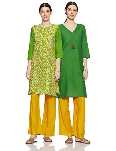 Amazon Brand - Myx Women's Straight Kurta (Pack of 2)(SS18A6B6_Green, Yellow_Medium)