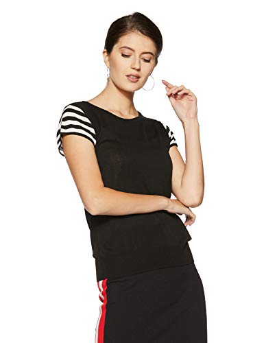Van Heusen Woman wear Women's Plain Regular Fit Top (VWFTFRGFH42662_Black_L)