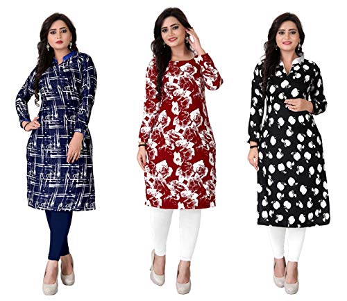 Kesari King Women's A-Line Crepe Printed Semi-Stitched Kurti Material (1023,25,38, Multicolour, Free Size) -Combo Pack of 3