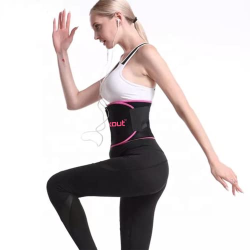 WRKOUT Premium Sweat Belt for Men and Women, Tummy Trimmer Body Shapewear Sauna Waist Trainer Adjustable Waist Slimmer with Maximum Strength Bands (Pink, Fits 50 Inches)