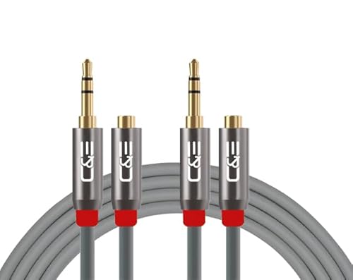 C & E (Cables & Etc® Pure Copper 3.5mm Stereo Audio Extension Cable Male Female Connectors with Zinc Alloy Metal Plugs Cable [ 2 Pack] [ 1.5Feet, [ 0.5 Meters]