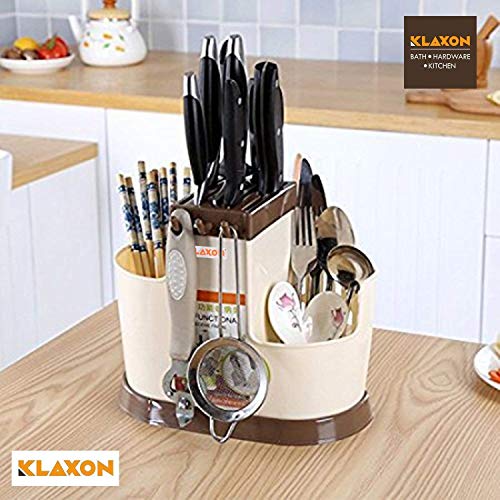 Klaxon Plastic Multifunctional Spoons, Knife and Other Kitchen Cutlery Storage Holder Stand, Beige