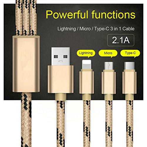 - Super Multi Functional: 3 in 1 charging cable improve charging capability up to 2.1A(three devices total) to give your 3 devices more quickly charged at the same time(Data transferring only for micro usb). 1 cable can meet your daily devices charging needs.
