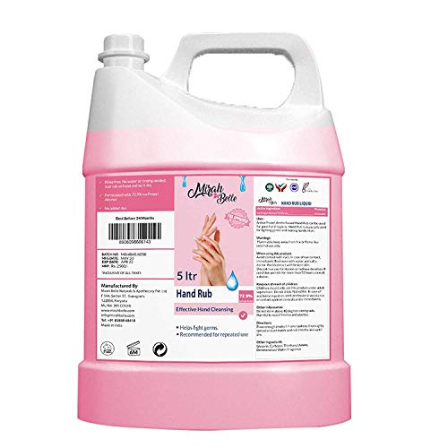Mirah Belle - Hand Rub Sanitizer Gel - (5 Ltrs) - Vegan, Cruelty Free - Best for Men, Women and Children - Sulfate and Paraben Free Hand Cleanser Refill Pack