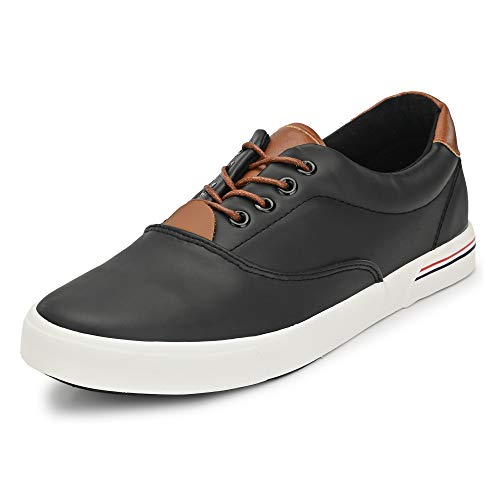 Klepe Men's Black Vulcansied PU Sneakers-9 UK (43 EU) (10 US) (0702B/BLK)