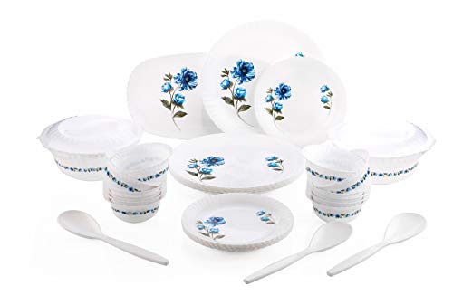 Herry Brand Exclusive and Microwave Safe, Plastic Printed Round Flourish Dinner Set of 36 Pieces- (Blue)