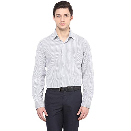 AMERICAN CREW Men's Full Sleeve White, Grey & Green Stripes Shirt with Pocket - 42 (ACX19-42)