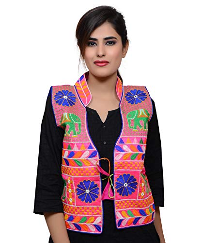 Banjara India Women's Embroidered Ethnic Kutch Work Jacket (KJK06, Pink Free Size)