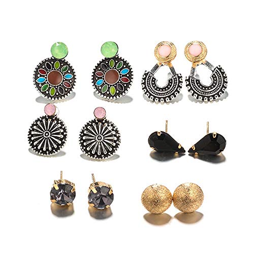 Shining Diva Fashion Latest Design 6 Pairs Combo Stylish Crystal Stud Earrings for Women and Girls (Multi-colour) (10709er)
