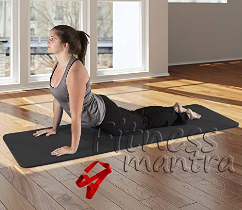 Fitness Mantra® 6MM Anti Skid Yoga Mat with Carrying Strap Gym Workout and Flooring Exercise Long Size Yoga Mat for Men Women (Black)