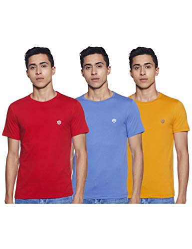 Fort Collins Men's Solid Regular fit T-Shirt (Pack of 3) (FC11140_Red/Mustard/Blue M)