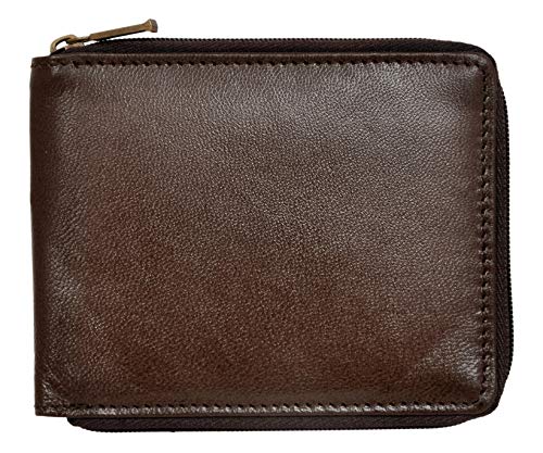 Genuine Leather Wallet for Men with Full Zipper (Brown)