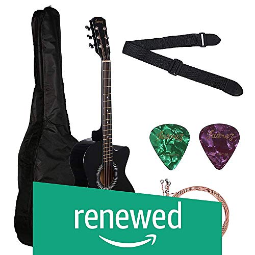 Loot: (Renewed) Juarez Acoustic Guitar, 38 Inch Curved Body Cutaway, 38CUR with Bag, Strings, Pick and Strap, Black